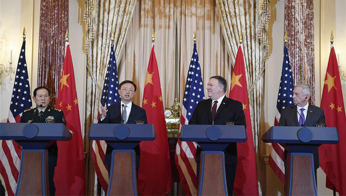 M. Yang a co-présidé le dialogue avec le secrétaire d'Etat américain Mike Pompeo et le secrétaire à la Défense américain Jim Mattis.