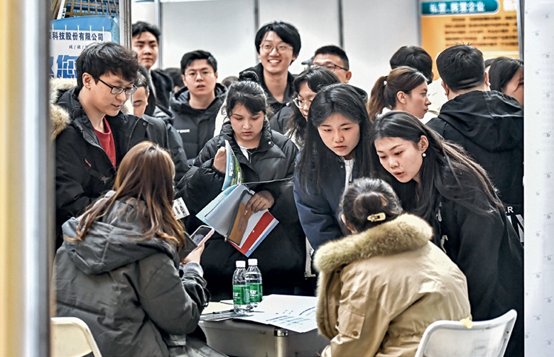 Un salon de l’emploi à Urumqi, dans la région autonome ouïgoure du Xinjiang, le 2 mars 2025