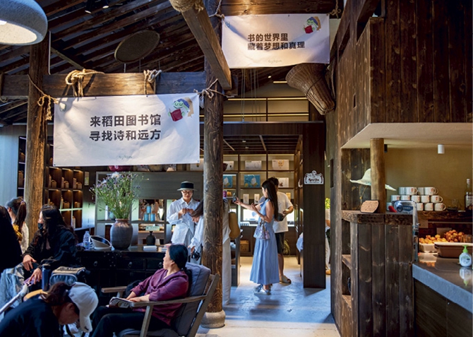 Une bibliothèque au milieu des rizières dans le village de Zhentou, à Suzhou (Anhui), le 11 mai 2025