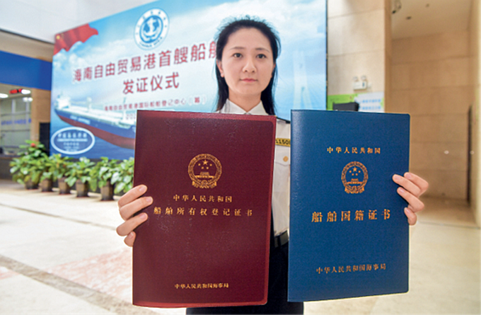 Remise du premier certificat d’immatriculation « Port de Yangpu – Chine » au navire COSCO Shipping Xing Wang. Un jalon historique qui concrétise les politiques de transport maritime du Port de libre-échange de Hainan.