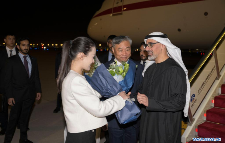 Cheikh Khaled ben Mohammed ben Zayed Al Nahyane, prince héritier d'Abou Dhabi, aux Emirats arabes unis, est arrivé dimanche à Beijing pour une visite en Chine.