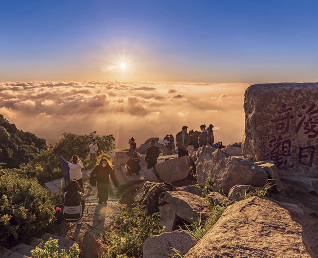 Quatre merveilles sont attribuées au mont Taishan, notamment l’océan de nuages, les reflets pourpres du soleil couchant, les lumières de Bouddha, et en tête de la liste, le lever de soleil. Pour pouvoir admirer cette dernière merveille, il y a deux options. L’une consiste à loger dans l’hôtel au sommet du mont et à se lever très tôt le lendemain ; l’autre consiste à commencer à grimper depuis l’entrée de Hongmen pendant la première moitié de la nuit (le trajet complet dure environ 6 h).