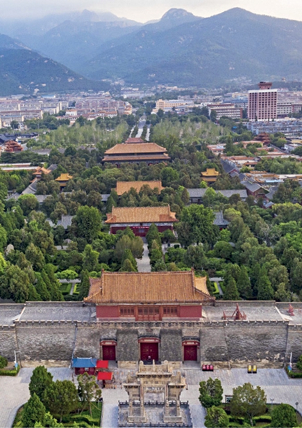 Anciennement connu sous le nom de temple Dongyue ou de temple Tai, le temple Dai était le point de départ des pèlerinages du mont Taishan. Construit sous la dynastie Han (206 av. J.-C.-220 ap. J.-C.), il est dédié au dieu du mont Taishan. Ainsi, les empereurs dans l’antiquité y séjournaient et y tenaient de grandes cérémonies quand ils pratiquaient des sacrifices fengshan. Au début, le temple Dai était assez modeste, tandis qu’il devint prospère sous la dynastie Tang (618-907), puis s’agrandit sous la dynastie Song (960-1279). Avec une architecture de palais impérial, le temple Dai fait partie des quatre plus anciens édifices les plus célèbres de Chine, avec la Cité interdite à Beijing, la Résidence de montagne et temples avoisinants à Chengde (Hebei), ainsi que le temple et cimetière de Confucius et résidence de la famille Kong à Qufu (Shandong).