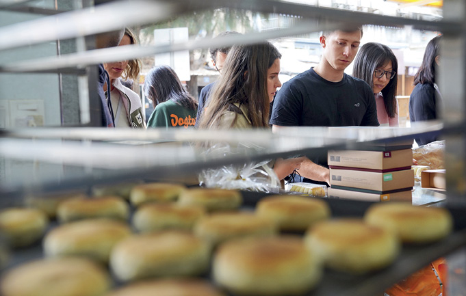 Des jeunes visiteurs étrangers dégustent des gâteaux locaux dans les rues de Xiamen. (PHOTO : YU JIE)