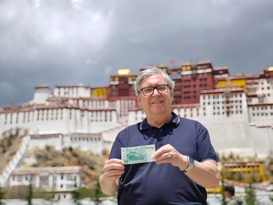 Jean Pégouret devant le Palais du Potala à Lhassa (Xizang, 2024).