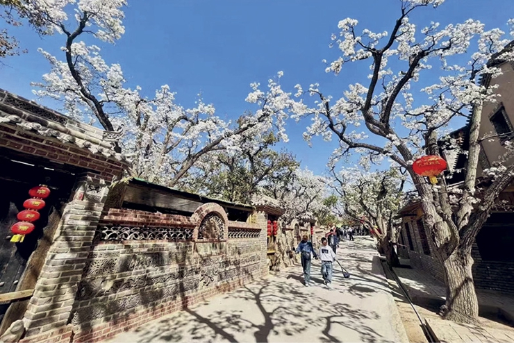 Ce paysage n’est pas seulement un tableau bucolique, c’est le fruit d’une ingéniosité née en 1495, sous la dynastie Ming (1368-1644), lorsque l’édification d’une forteresse a transformé cette terre sauvage en un havre habité. Sous le règne de l’empereur Jiajing (1522-1566), les habitants ont inventé un modèle agroforestier visionnaire basé sur le principe des « forêts en hauteur et des cultures en contrebas ». Ce système repose sur une symbiose entre les poiriers qui protègent les sols contre l’érosion et la désertification, ainsi que les haricots et les légumes qui préservent l’humidité et fertilisent les sols. Aujourd’hui encore, cet écosystème fonctionne avec une production de plusieurs milliers de tonnes de poires par an.