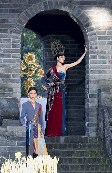 En septembre 2025, l’artiste marque les esprits sur la Grande Muraille de Simatai lors de la clôture de la Semaine de la mode de Beijing printemps-été 2026. Dans ce cadre majestueux, il dévoile sa collection Craftsman Fusion Wear. Une cinquantaine de tenues nées d’un dialogue avec l’intelligence artificielle (IA) y tissent, à travers les séries « Denim », « Suit » et « Brocart », le fil continu d’un artisanat entre passé et avenir. Le tout converge vers un leitmotiv unique résumé par le terme « rong » – faire fondre et fusionner.