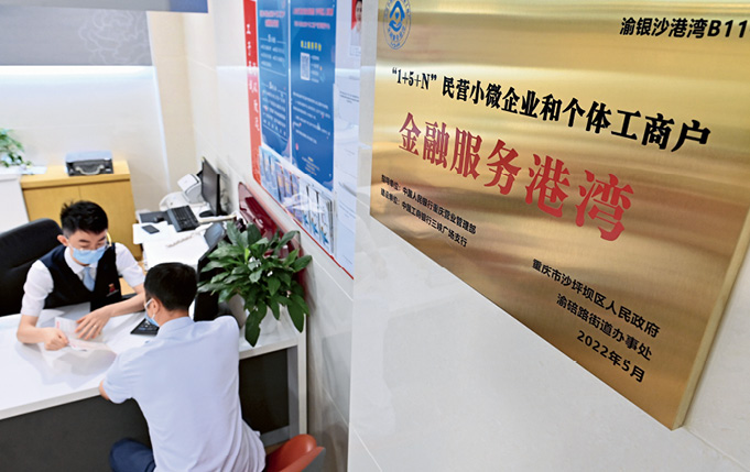 Un auto-entrepreneur discute des modalités de prêt dans une succursale de la Banque industrielle et commerciale de Chine, dans l’arrondissement de Shapingba, à Chongqing, le 16 août 2022.