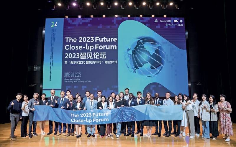 Les participants de la tournée Future Close-Up posent pour une photo de groupe à Beijing, le 20 juin 2023.