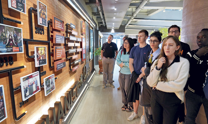 Une délégation de jeunes de l’étranger visite la société de technologie de réseau Mechanist Games, au parc des logiciels de Xiamen. (Photo : YU JIE)