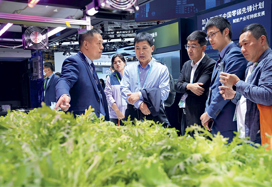 L’agriculture verticale de Siemens dans la zone d’exposition des équipements techniques attire les visiteurs lors de la 6e CIIE. (PHOTO : YU JIE)