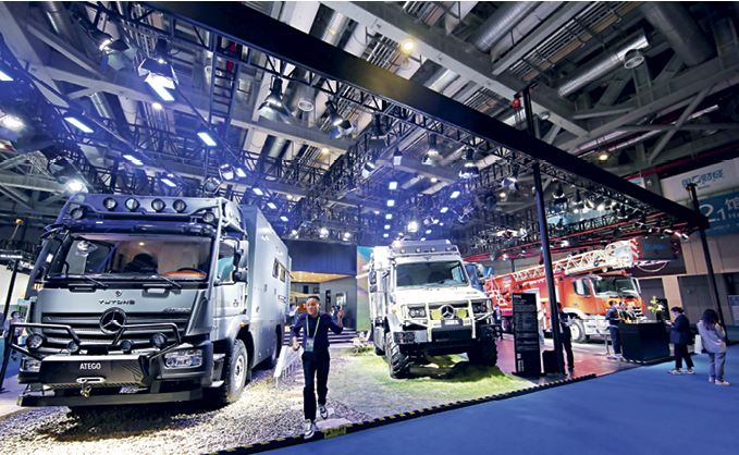 Daimler Trucks présente trois véhicules vedettes dans la zone d’exposition automobile de la 6e CIIE. (PHOTO : YU JIE)