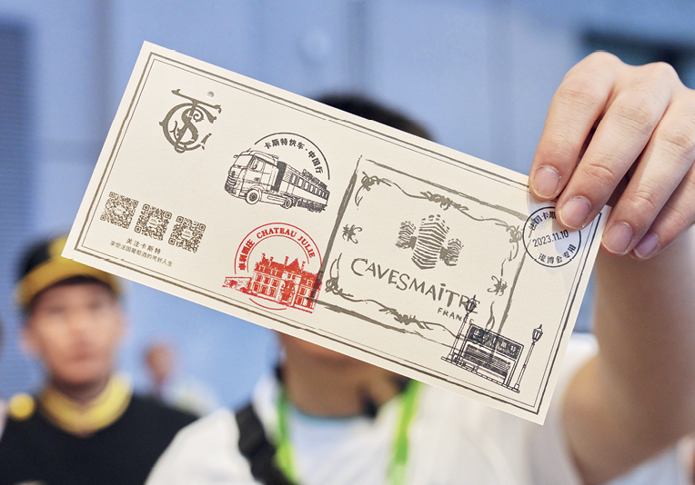 Un visiteur sur le stand de Cavesmaître dans la zone d’exposition de produits alimentaires et agricoles à la 6e Exposition internationale d’importation de la Chine (CIIE), le 10 novembre 2023