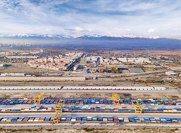 « Khorgos » signifie « l’endroit où des caravanes de chameaux passent ». Poste stratégique de l’ancienne Route de la Soie, Khorgos est aujourd’hui un passage majeur sur la ligne Chine-Europe et une vitrine importante de l’ICR, reflétant le dynamisme du commerce international.