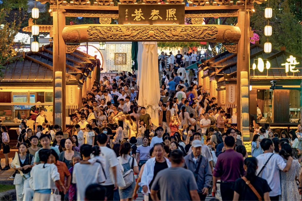 Un marché nocturne bondé de monde à Jinhua (Zhejiang), le 4 octobre 2023