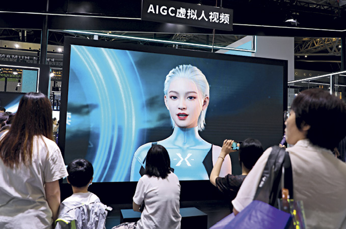 Une présentatrice virtuelle générée par l’IA lors de la Conférence mondiale sur l’IA à Shanghai, le 8 juillet 2023