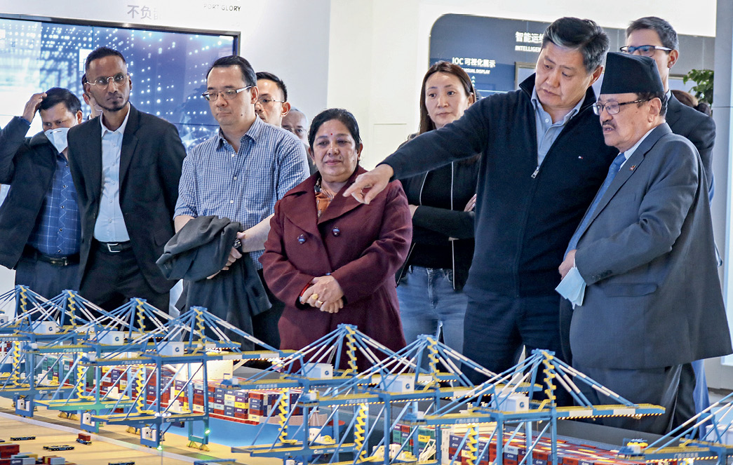 Des diplomates venant de 17 pays partenaires de l’ICR visitent le centre d’innovation du port intelligent du golfe de Beibu, dans le Guangxi, le 3 avril 2023.