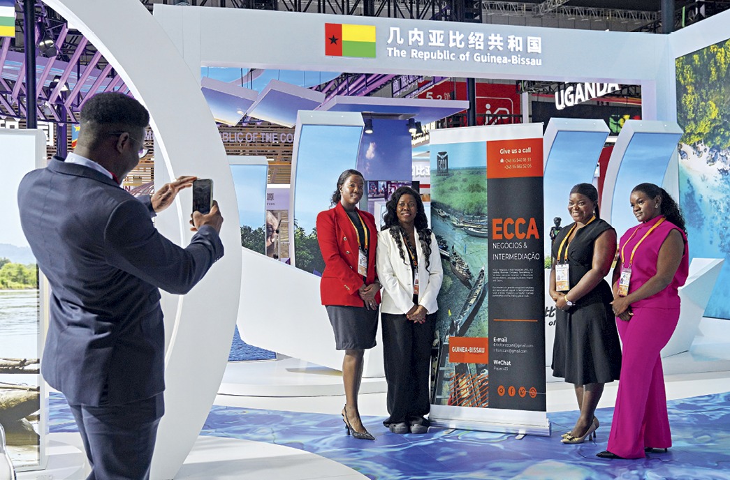 Stand de la Guinée-Bissau à la 6e Exposition internationale d’importation de la Chine (CIIE) à Shanghai, le 5 novembre 2023 (PHOTO : YU JIE)