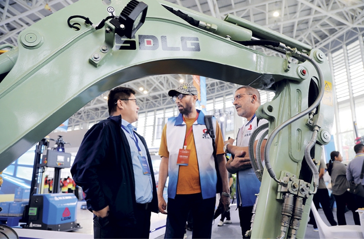 Acheteurs et exposants discutent à la 3e Conférence internationale sur l’approvisionnement de la Cité commerciale de Linyi (Shandong), le 10 octobre 2025.